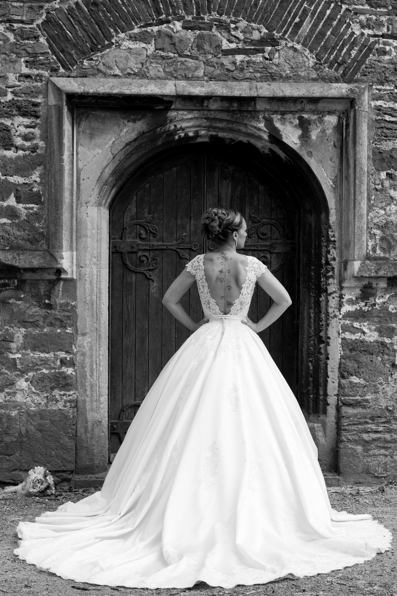 This dress was from the lovely ladies at Courtyard Bridal. It had a huge skirt, with beautifully delicate lace details at the top and the body of the dress. You can see the the detail better when Lucy wears the dress below.